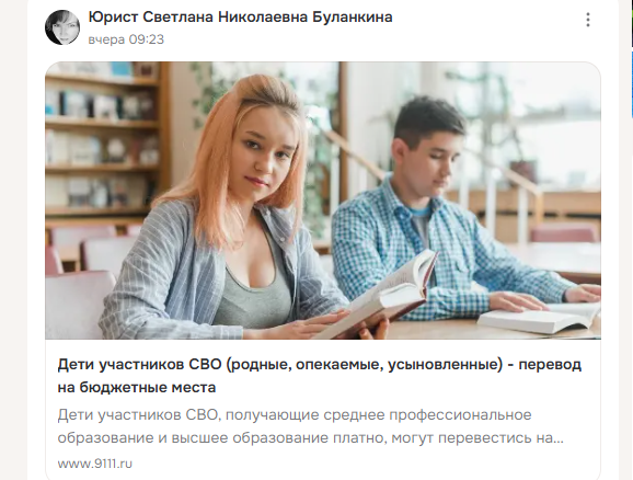Дети участников СВО, получающие среднее профессиональное образование и высшее образование платно, могут перевестись на бесплатные бюджетные места.