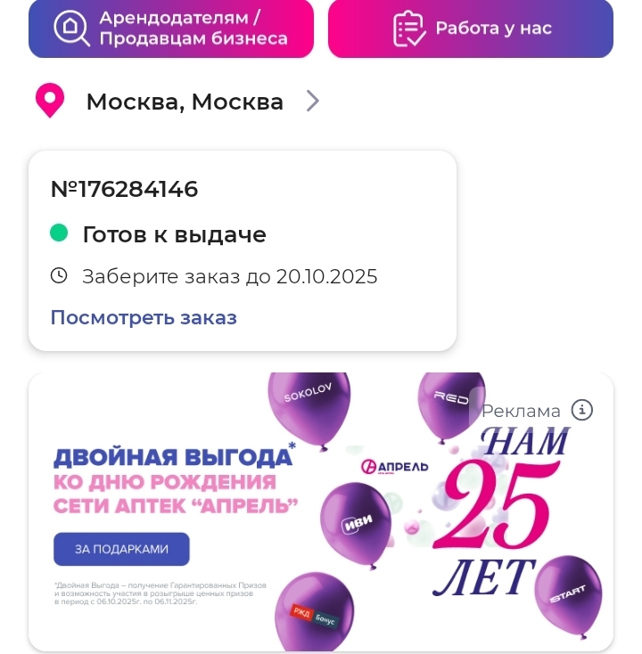Всегда заказываю в Аптека Ру, ни с апрелем ни с Зравсити и прочими больше не связываюсь