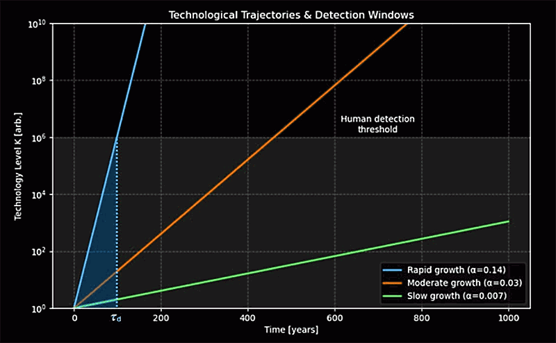 Этот «период обнаружения» — это краткий промежуток времени, в течение которого технологии цивилизации пересекаются с нашими текущими возможностями их наблюдения.