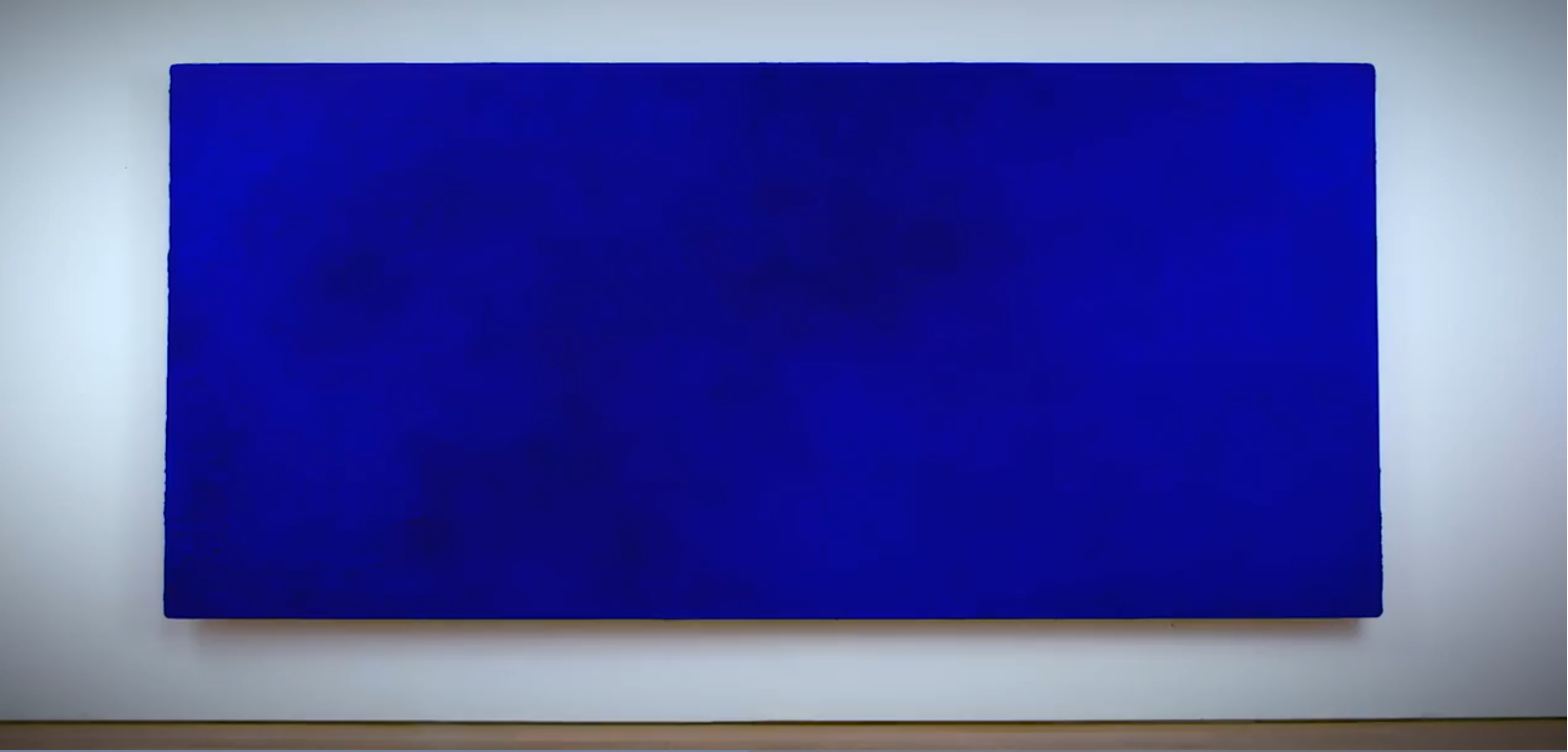 Лотом этим была картина. Холст. Один метр девяносто восемь на три метра шестьдесят один сантиметр. И он был синим. Просто синим. Однородно, тотально, безоговорочно синим. Автор, французский художник-визионер Ив Кляйн, человек, который в 1961 году, судя по всему, решил, что лучший способ изобразить космос — это заказать ему один сплошной синий костюм.