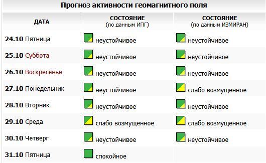 Прогноз магнитных бурь на 25, 26 и 27 октября 2025 года