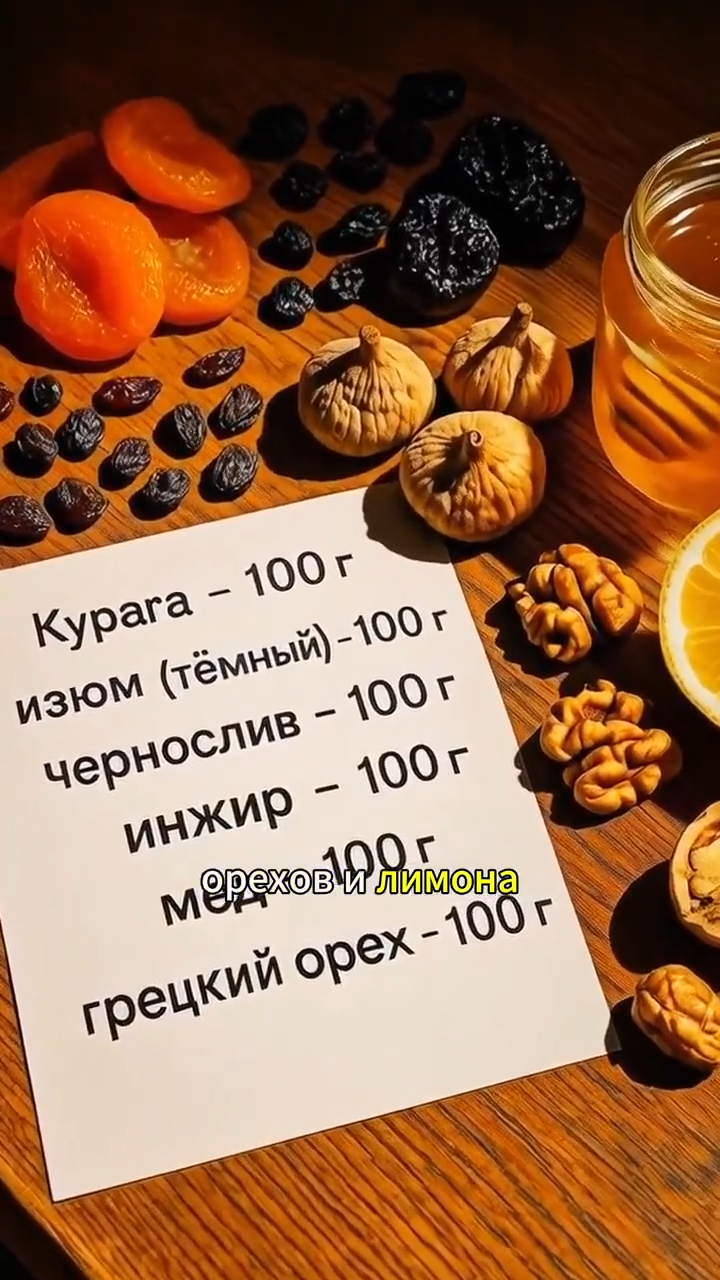- Ингредиенты пасты Амосова – курага, финики, изюм, инжир, орехи, лимон. Дополнительно можно использовать специи или семена на выбор: имбирь, корицу, гвоздику, кардамон, семена льна, чиа или тыквы.