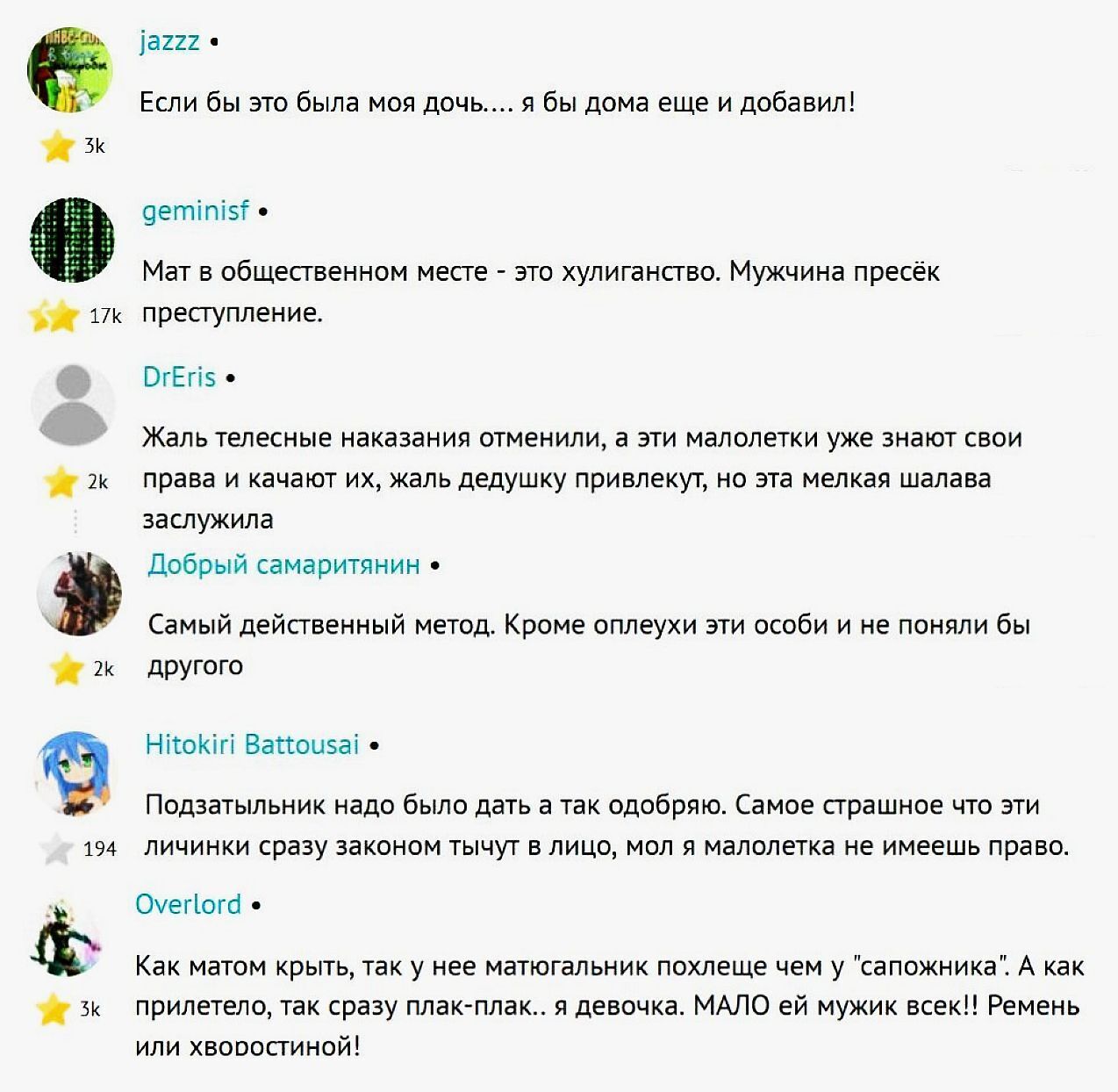 Да никто не говорит ,что мужик правильно поступил, но сдерживаться приходится все сильней и сильней ...Эти нынешние невоспитанные малолетки ,все границы переходят!Судя по последним новостям, только это скоро и останется единственной формой воздействия...