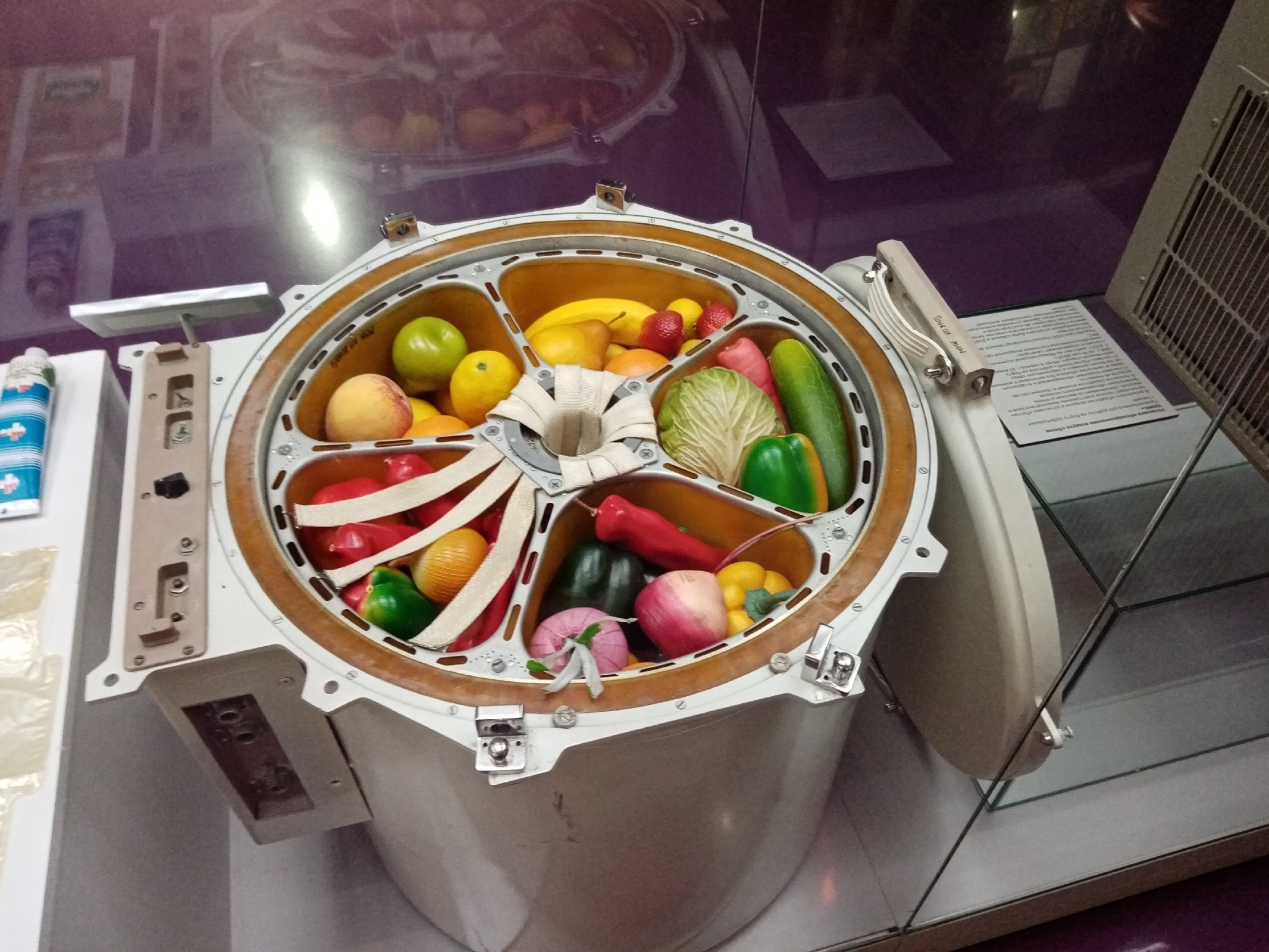 Еще любопытно было узнать о питании космонавтов в условиях космического полета. В музее представлены образцы продуктов, используемых в те годы, а также образцы одежды для питания в невесомости. Оказывается, питание космонавтов — это специально подготовленные пайки, которые упакованы в герметичные контейнеры. Они позволяют обеспечить организм необходимыми веществами и энергией даже в условиях невесомости. Ещё в экспозициях представлена техника для приготовления и употребления пищи в космосе. Поражает, что даже в такое высокотехнологичное время питание космонавтов было очень продуманным. Ведь от этого зависит их здоровье и работоспособность.