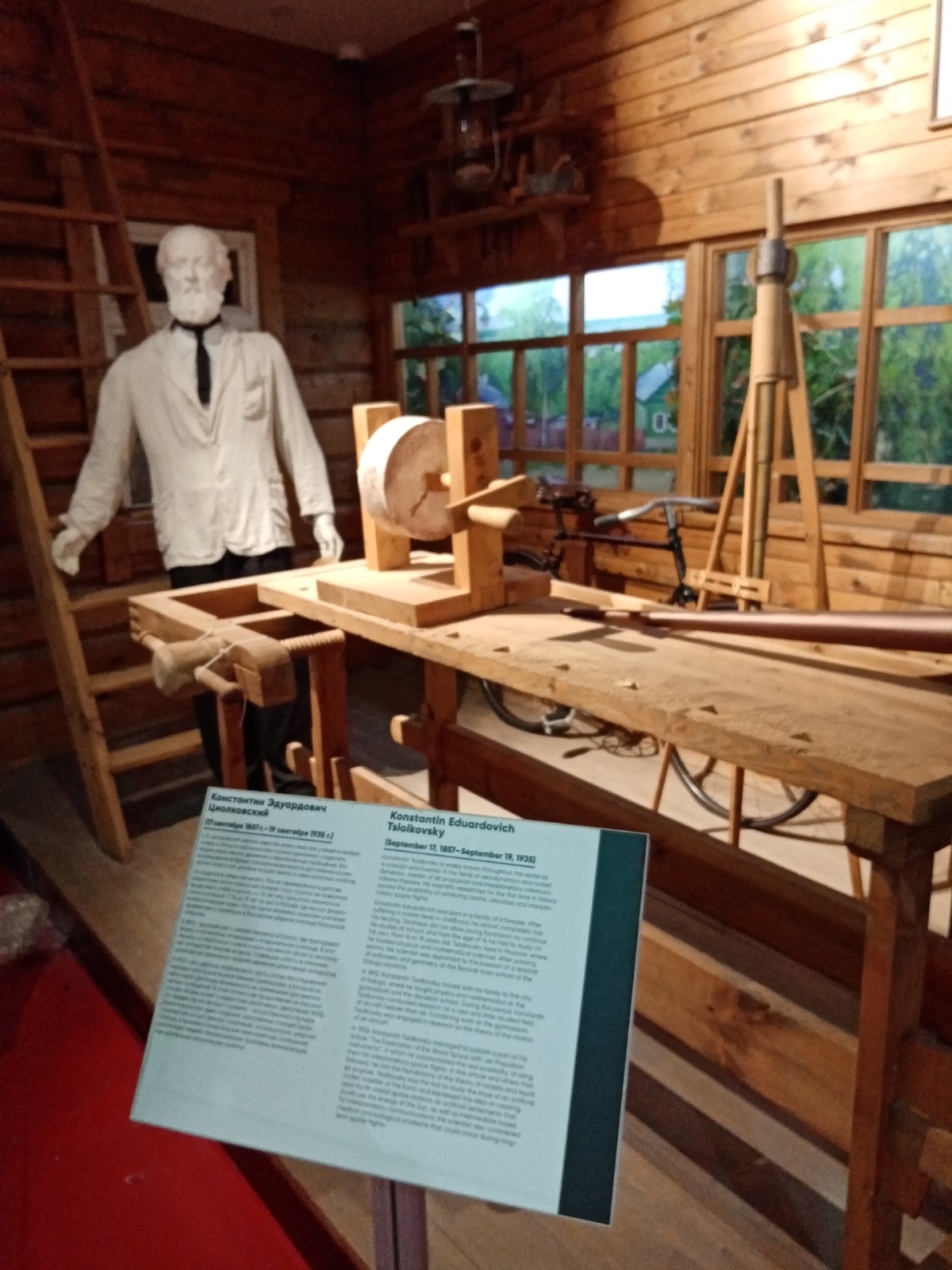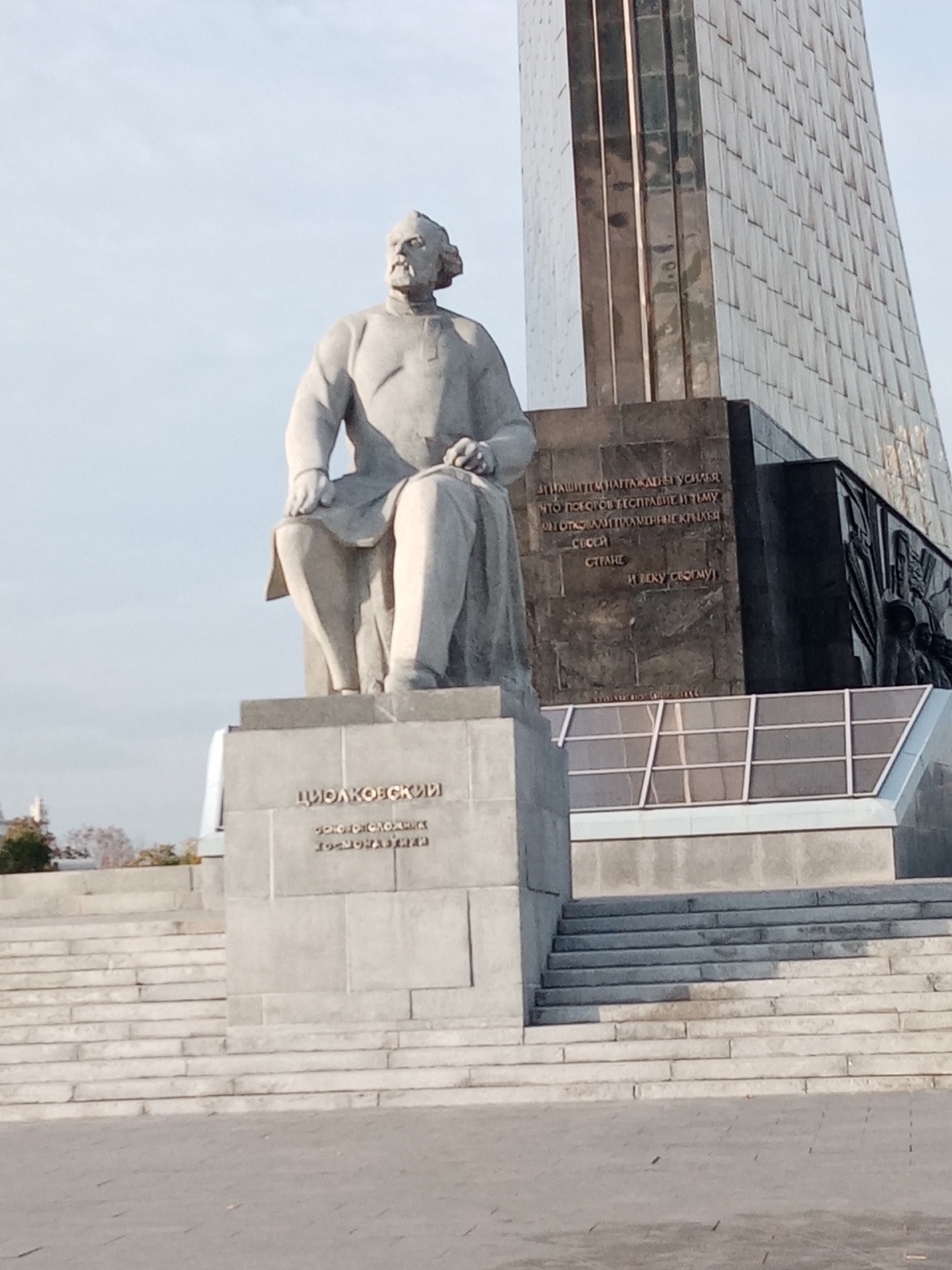 Весь музей находится под памятником Константина Эдуардовича Циолковского (1857–1935). Это российский учёный и изобретатель в области воздухоплавания, авиации и ракетной техники, именно он является основоположником современной космонавтики.
