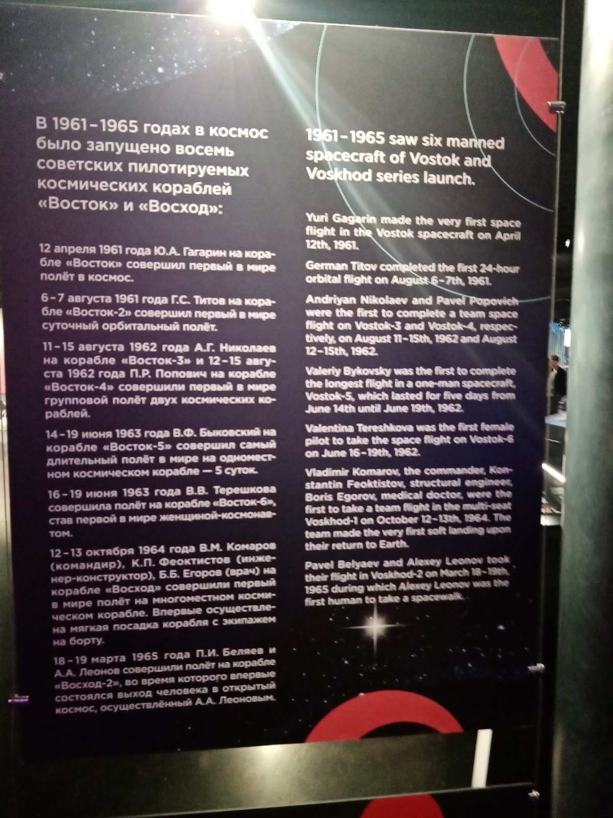 Мы по долгу рассматривала развернутые стенды, посвященные основным этапам программ по запуску космических кораблей в те годы.