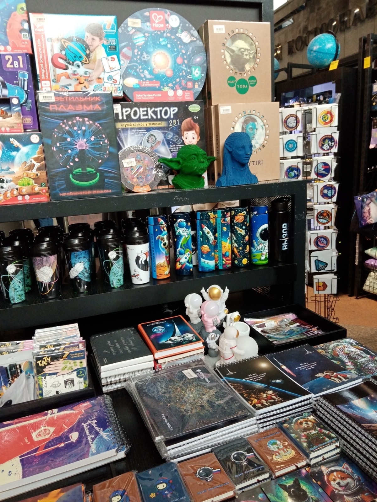 На выходе из музей большая сувенирная лавка. Здесь всё про космос.
