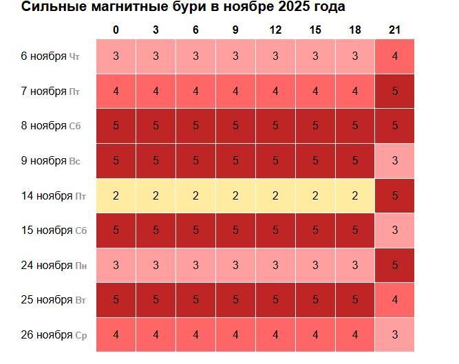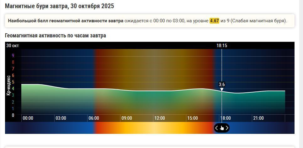 Таблица интенсивности магнитных бурь 30 октября 2025 г.: