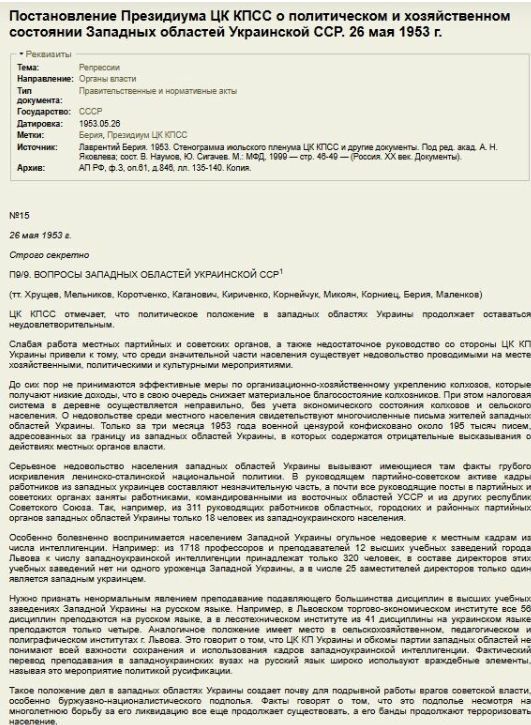 На пленумах партийных организаций теперь говорили: «Берия хотел разделить наш единый советский народ на "западных" и "восточных" украинцев!»