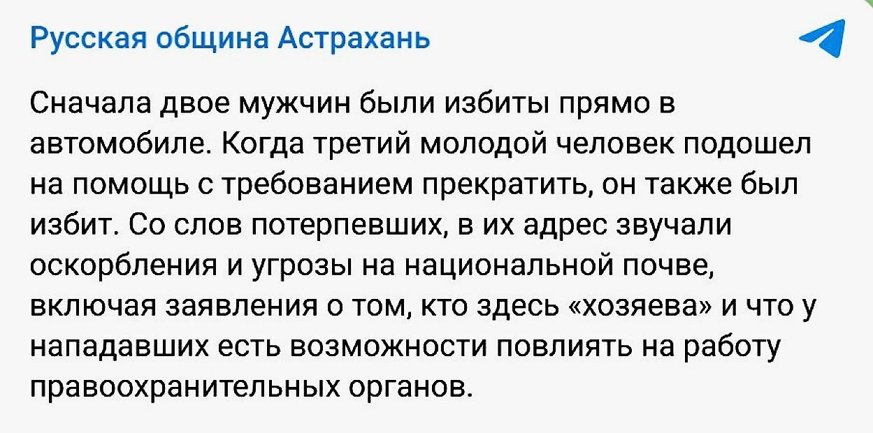 Вот как рассказал об инциденте телеграм-канал «Русская община Астрахань»: