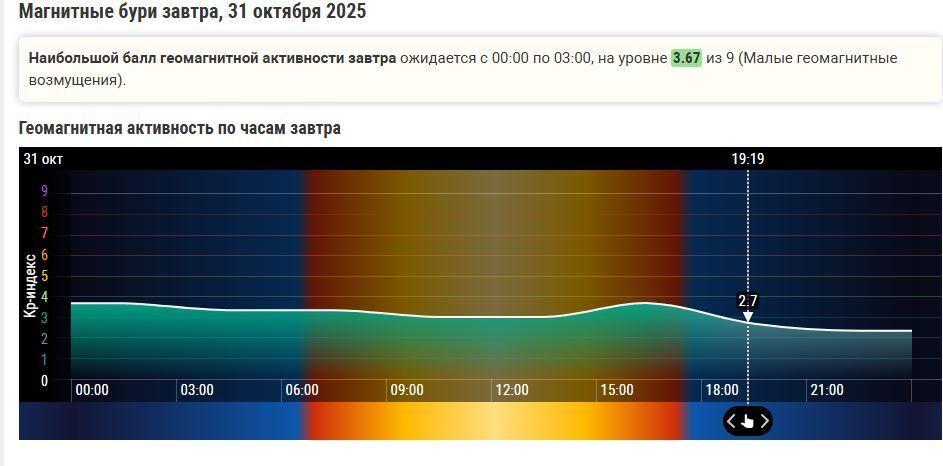Геомагнитная обстановка 31 октября 2025 года.Сегодня станет полегче.