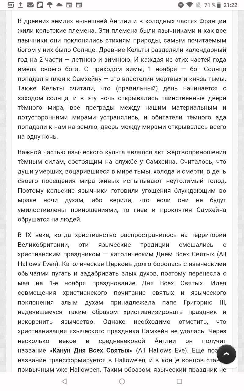 Николай, мне не надо рассказывать, я читала про этот праздник. Есть облегчённые версии, чтобы не спугнуть любителей этого праздника. Тем более, он приносит прибыль, раскупаются всякие атрибуты, заказываются рестораны, выгодно скрывать всю правду. На самом деле всё далеко не так безобидно. И да, тёмная сила существует, если вы в это не верите, то это не значит, что этого нет. Может быть, ещё столкнётесь, только не дай Бог.
