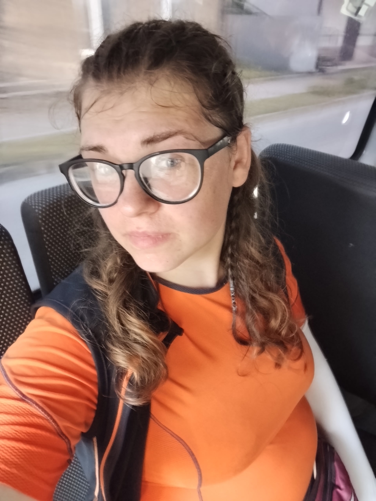 Выехала из дома в 9 утра. На часах почти 17. Уже так быстро ехать не смогу. Значит дорога займет часов 6. Еды, воды и денег почти нет. На последние купила бутылку воды и запасные труселя в Полесске. На тот момент вся зарплата ушла на кредит. Новых ресурсов не было. А усталость берёт своё...