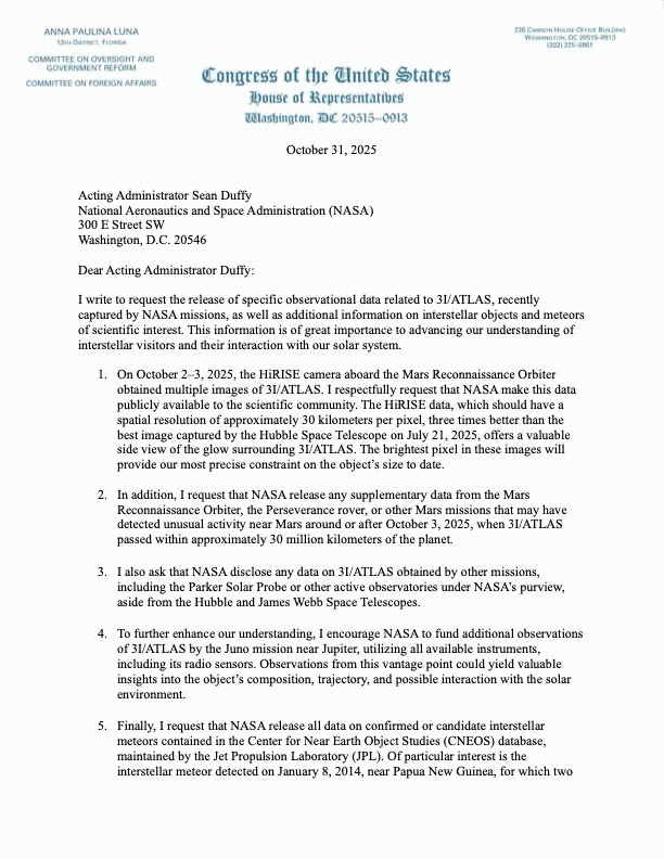 Администратор НАСА говорит о 3I/ATLAS и заявляет, что «Земле ничего не угрожает»