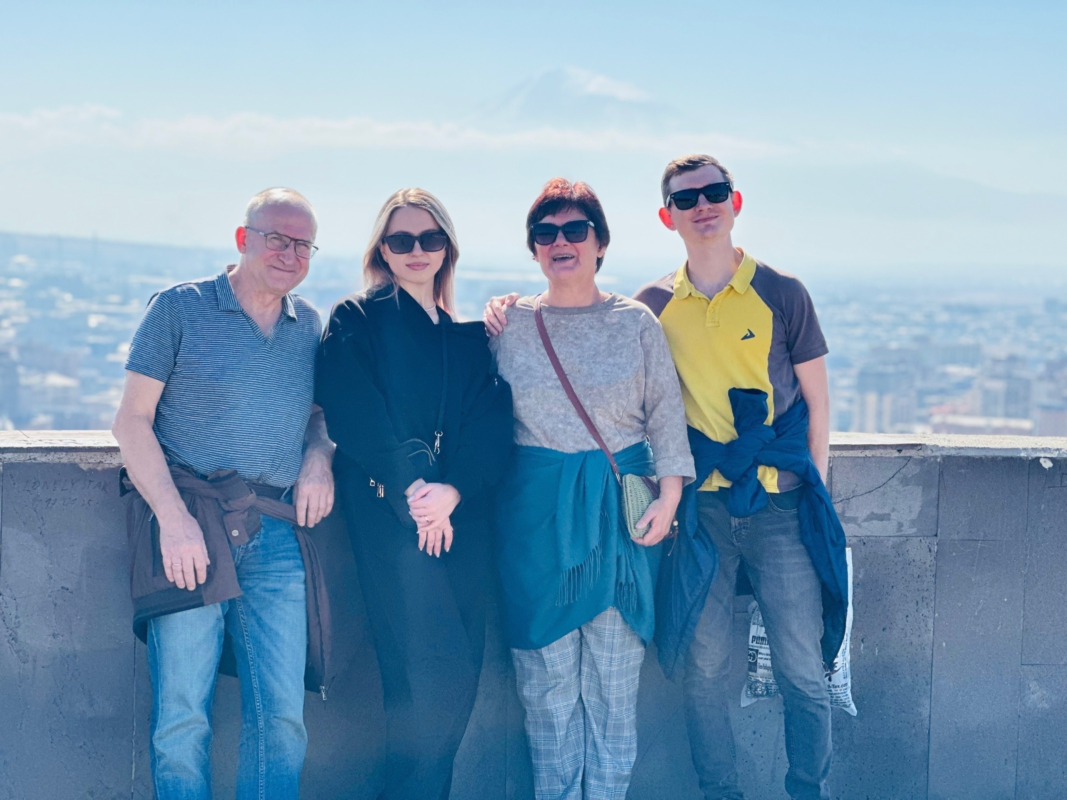 Присмотритесь, там в вышине виднеется Арарат. А мы в Ереване на вершине Каскада