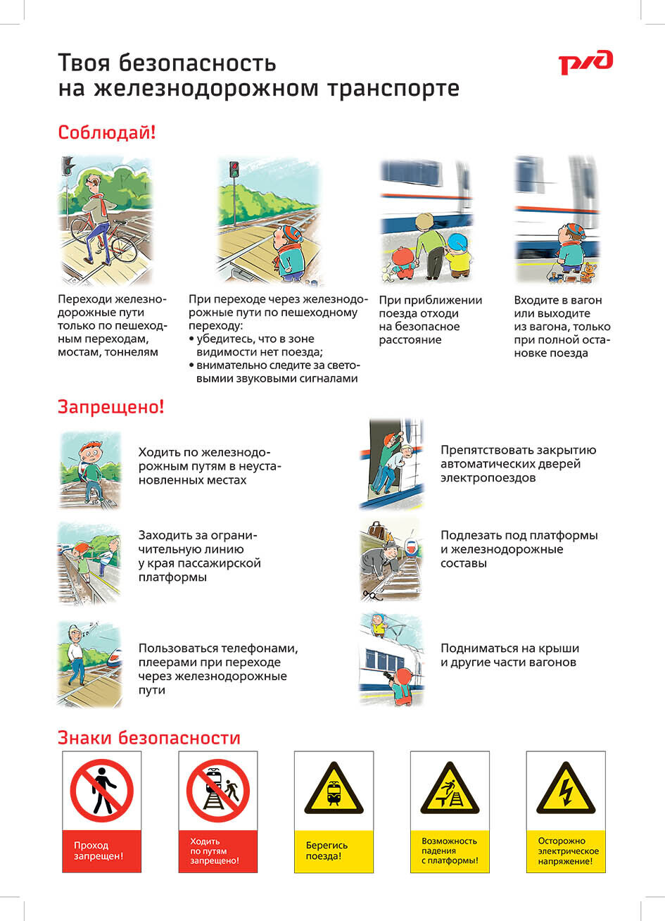 РЖД неоднократно напоминает и проводит рейдовые мероприятия по железнодорожным путям, выдаёт наглядный материал по правилам передвижения через пути.