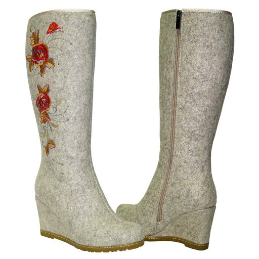 Во как... А вы говорите. Не валенки,а настоящие шедевры для модниц. Даже под кроссовки есть изделия. На все случаи жизни. И для ног полезно. Войлок не синтетика.В нём ноги дышат,а не преют.