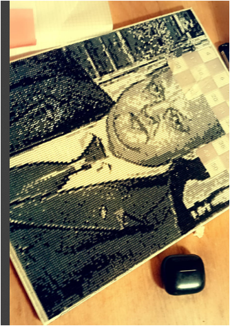 Я нашла много информации о дополнительном доходе от создания алмазных мозаик по фотографиям. Предложила соседке сделать портрет, и ей понравился результат. Сделала в чёрно-белом формате. Оплату взяла только за материал (ведь это первая моя работа). (фото процесса, исходник был плохого качества, старый снимок). Но итог получился хороший.