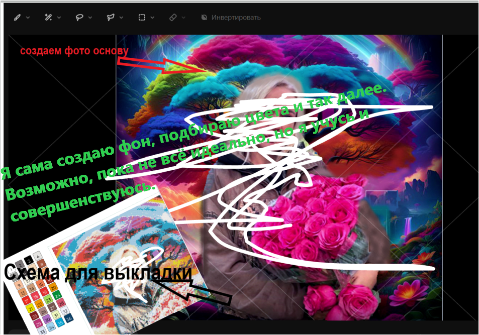 Да программы есть, но все платное. Но это не самое основное. Девочка заказала фон сказочный лес и она в центре, тут только программа фоторедактор, вставка фото в фото, закраска фона. Плюс много ручной работы, так как я не проф фотошопа. Потом да готовое фото можно в шаблонную онлайн программу вставить. Опять же, такие программы только платные по коду, если на сайтах берешь основу со стразами уже с той цветовой гаммой. Как на озоне к примеру. покупать их по коду на сайтах, где можно найти основу со стразами уже с подходящей цветовой гаммой. Например, на Ozon.