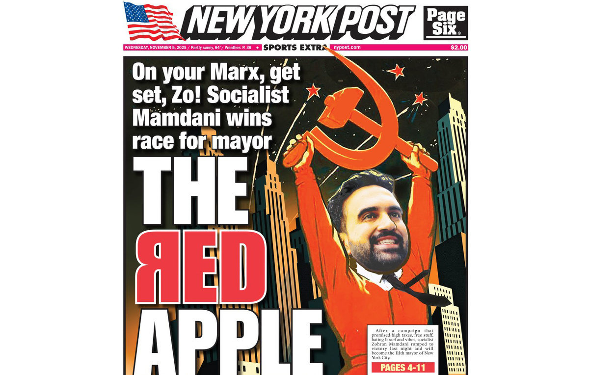 Газета New York Post (NYP) поместила на обложку своего номера от 5 ноября мэра Нью-Йорка демократа Зохрана Мамдани, держащим в руках серп и молот.