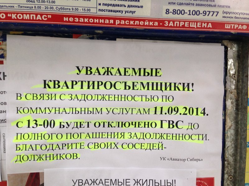 Раз в квартал у нас внизу вывешивают списки номеров квартир должников. У этих двоих сумма более 70 тысяч у каждого.
