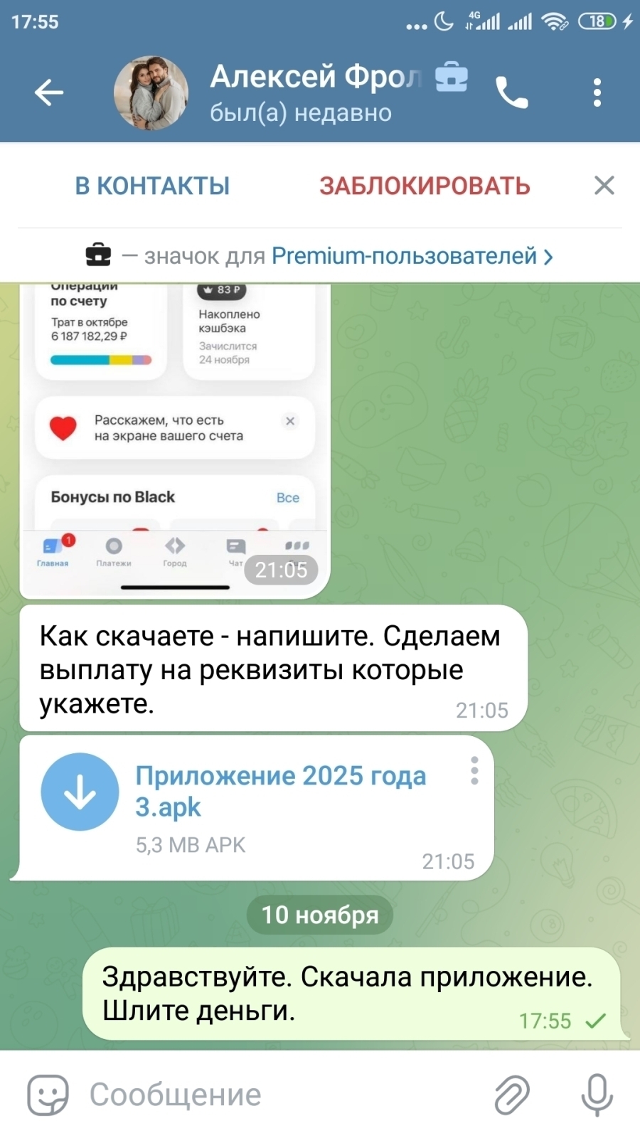 Пишущий мне человек говорил очень уверенно, что это реальный выигрыш, и мне осталось только сделать один легкий шаг — скачать их приложение. Он объяснял, что как только я пришлю ему скриншот с их программой, меня обязательно вознаградят. Более того, говорил, что сумма — действительно крупная, и я вполне могу стать обладательницей этих денег. Внутри меня сразу возникла тревога: что-то здесь не чисто, особенно когда начали говорить о необходимости подтвердить выигрыш именно этим способом.