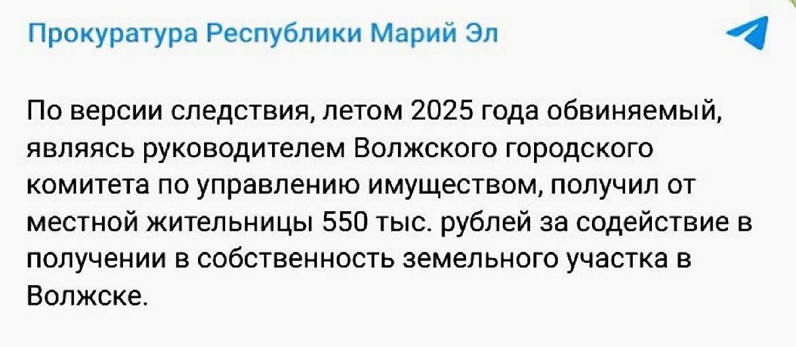 В Республике Марий Эл, был задержан 44-летний бывший вице-мэр города Волжск, по подозрению в получении взятки, о чём и сообщила прокуратура республики.
