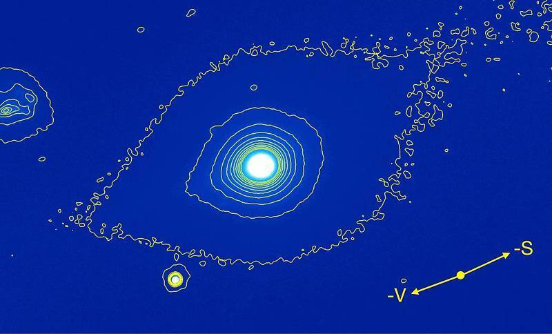 На изображении также видна более слабая асимметрия в направлении, противоположном Солнцу (антисолнечный).