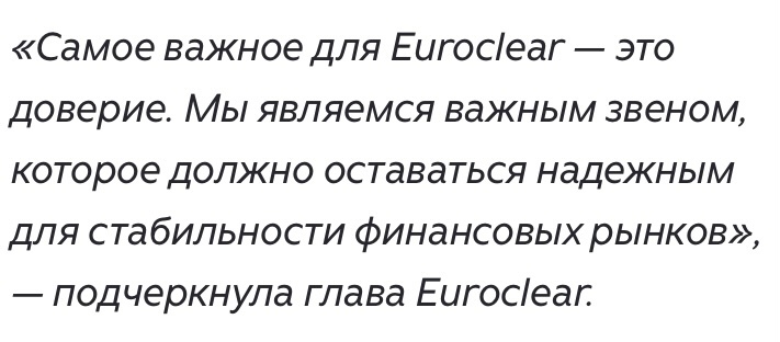 Руководитель хранилища российских активов Euroclear Валери Урбен категорически против каких либо шагов для конфискации замороженных денег нашей страны. Она прямо назвала планируемые действия против активов России - незаконными.