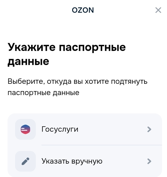 Паспортные данные нужны. Про Госуслуги у меня на ОЗОН ничего не спрашивали...