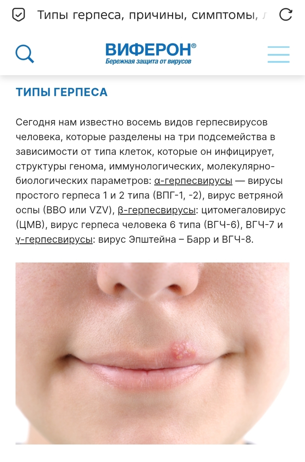 Всего науке известно восемь типов герпеса. Подробнее https://viferon.su/tipy-gerpesa-prichiny-simptomy-lecheniye/?ysclid=mi4p0509f9381684222