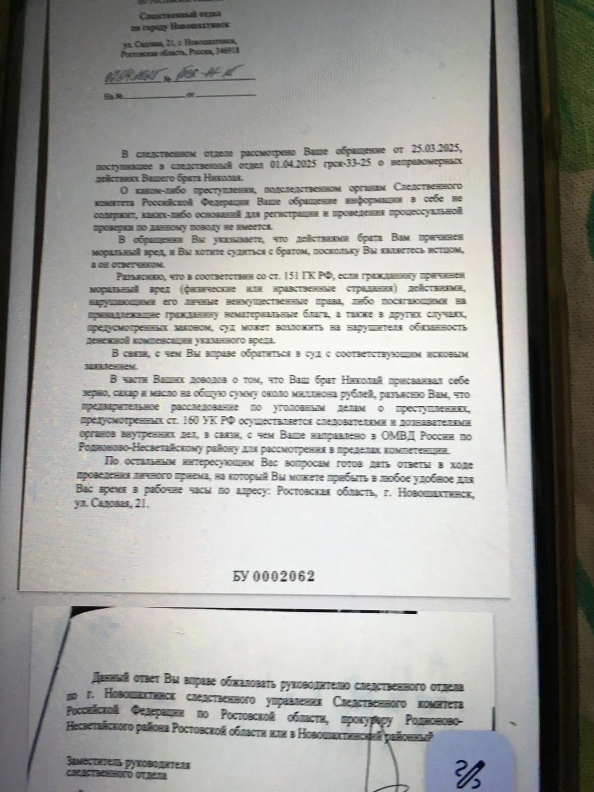 Моральный ущерб от брата составляет 33 миллионов рублей