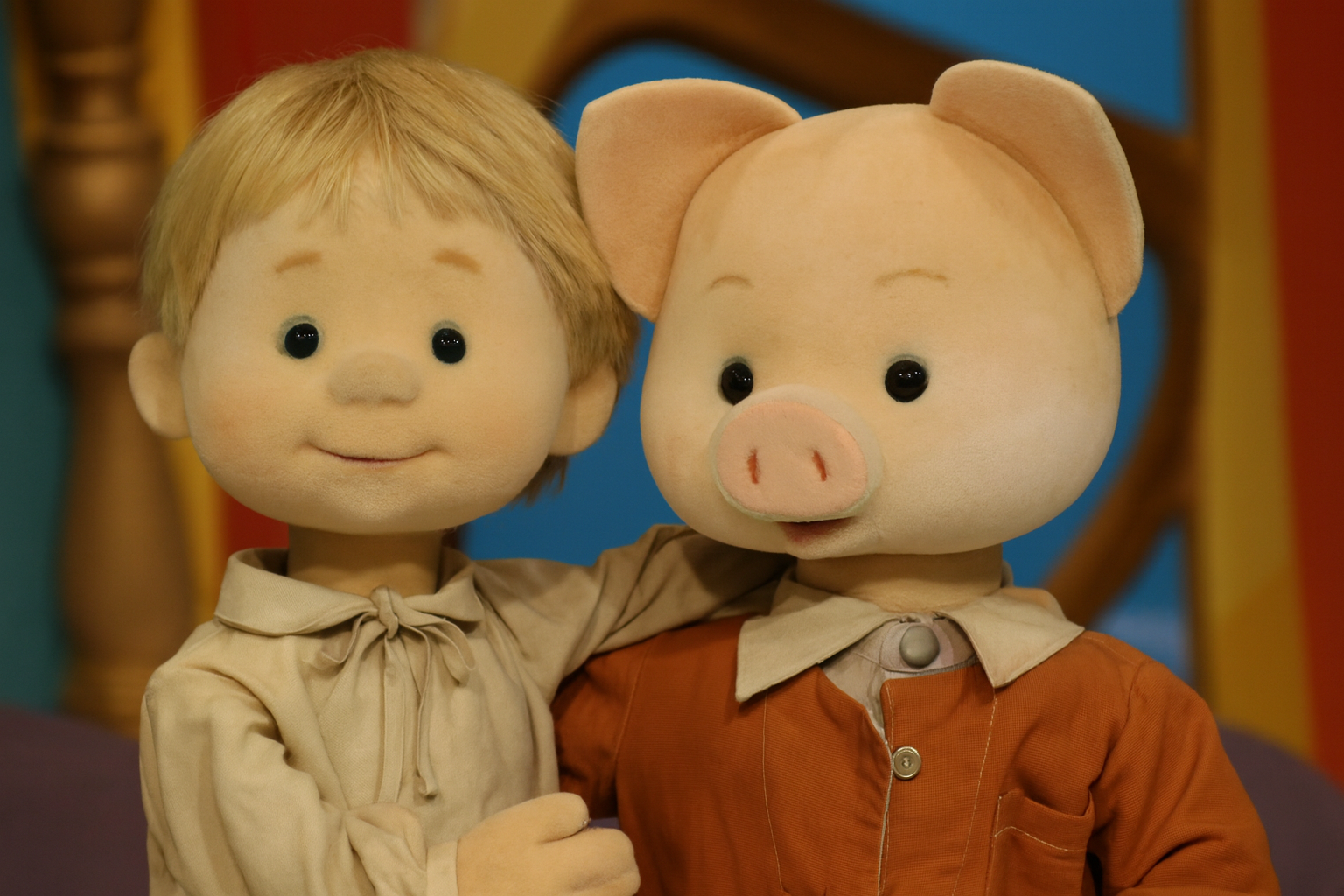 Со временем Хрюшу нарядили в модную одежду, а пугающие копытца заменили на лапки из папье-маше.
