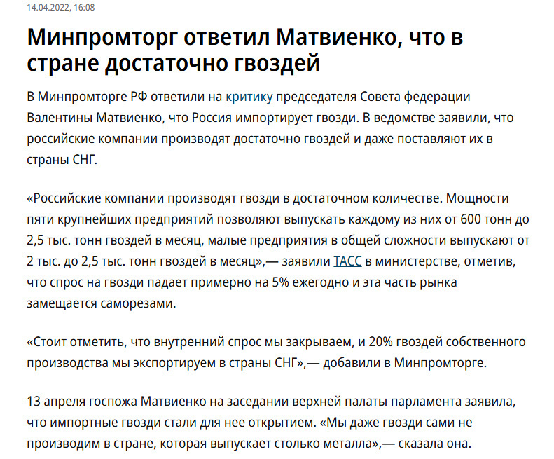 Как выяснилось совсем недавно, мы даже гвозди сами не производим - закупаем!