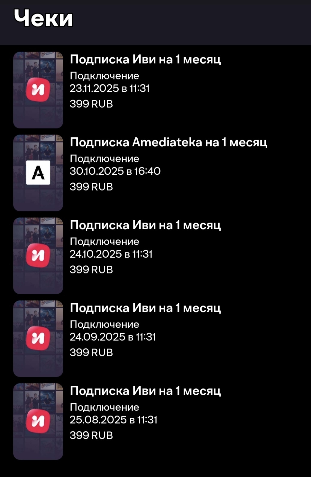 И вот сегодня, сижу я, чай пью и прилетает мне SMS из СБЕРА, что я оплатил подписку "ИВИ" аж, 399 рублей!