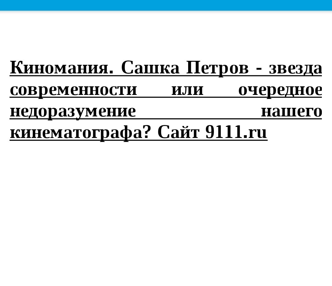 Киномания. Сашка Петров - звезда современности или очередное недоразумение нашего кинематографа? Сайт 9111.ru