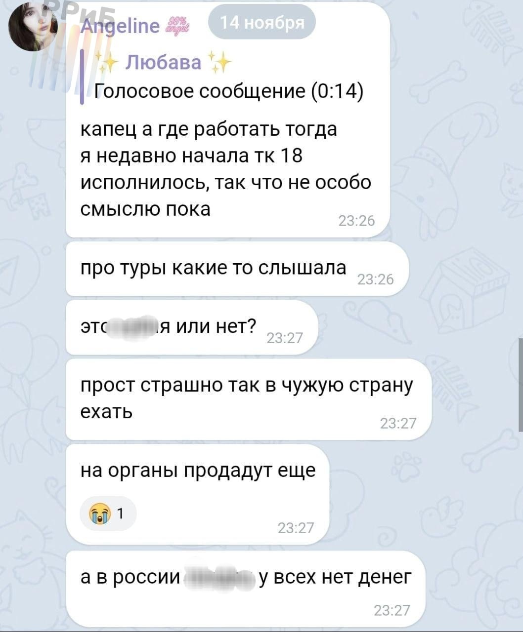 Так же интересуются "турами" за границу, но боятся, что их там продадут на органы.