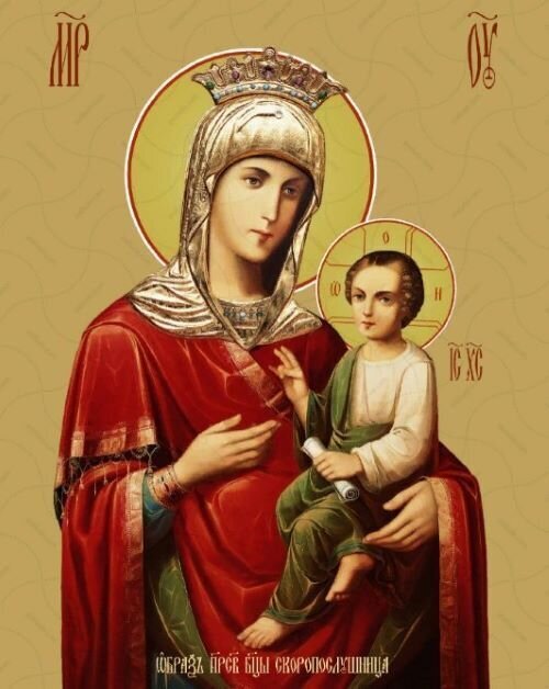 Икону просят о помощи во время стихийных бедствий и различного рода происшествий. Этому образу молятся об освобождении военных из плена. Считается, что Скоропослушница покровительствует семье и охраняет благополучие в доме.
