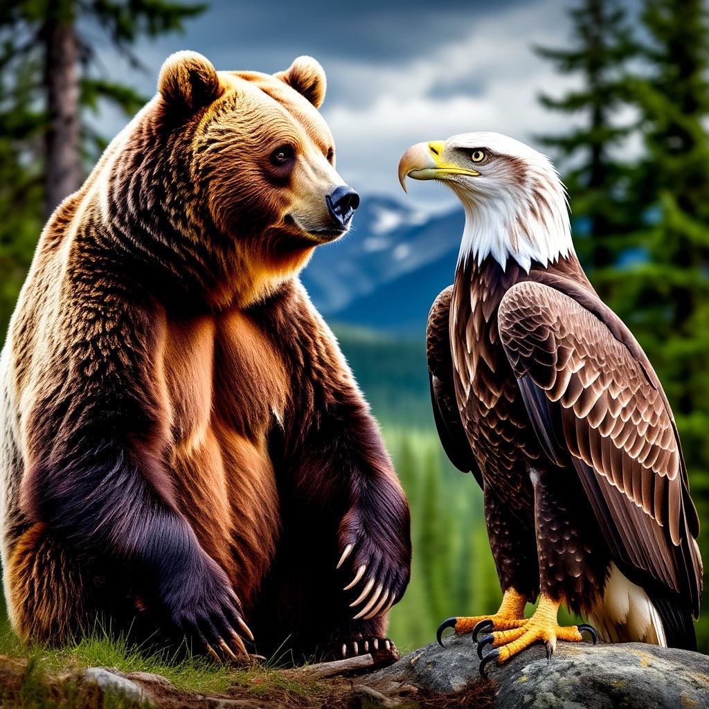 До чего добродушный вид у медведя в отличии от его геополитического противника.