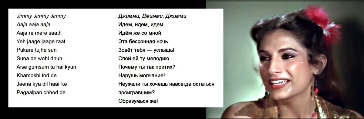 — Ну, там герой скачет на коне, поёт, все танцуют… А ещё была песня… Как её… «Джимми-Джимми» что-то!