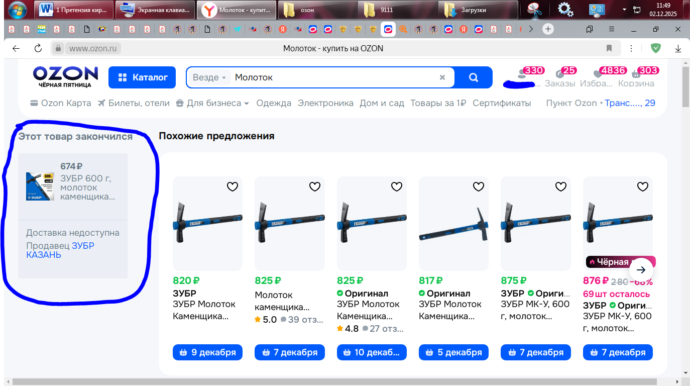 Таким образом, заказал данный молоток (заказ от 25 ноября 2025 г. № 90923282-0242).