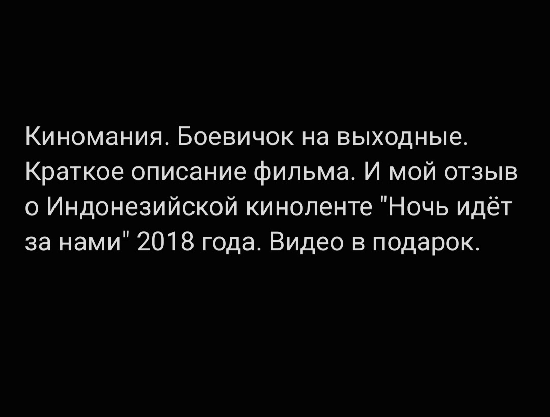 Киномания. Боевичок на выходные. Краткое описание фильма. И мой отзыв о Индонезийской киноленте "Ночь идёт за нами" 2018 года. Видео в подарок.