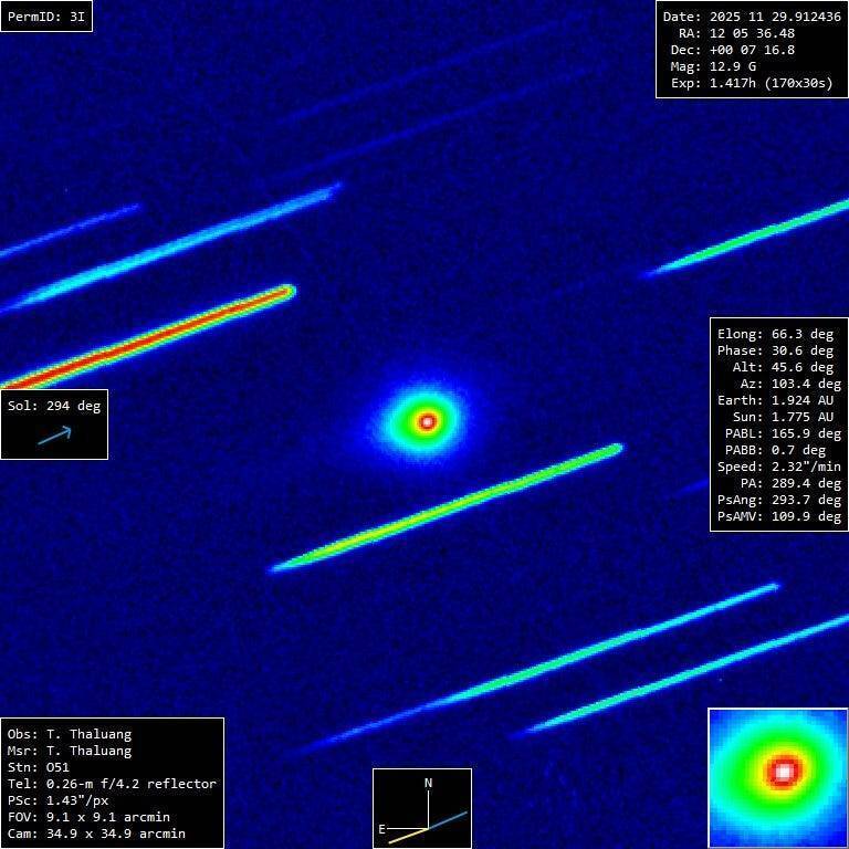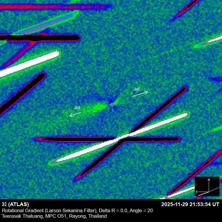 «К сожалению, в опубликованной до сих пор литературе не содержится систематического анализа этой пульсирующей картины на основе серии калиброванных изображений, полученных в течение нескольких дней. Последовательное (аналогично киносъемке) исследование яркости струй вокруг 3I/ATLAS имело бы решающее значение для раскрытия истинной природы этого межзвёздного гостя», — предполагает астрофизик из Гарварда.