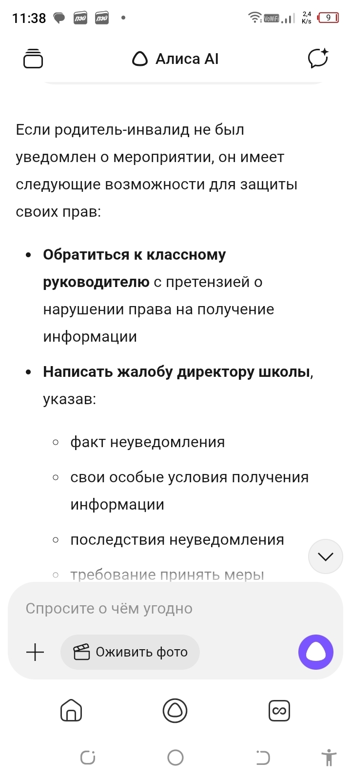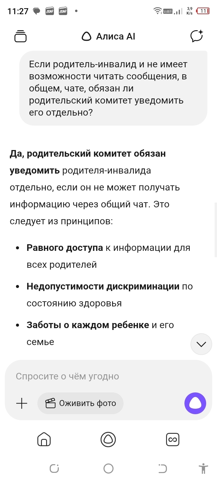 Как видите инвалид не обязан сидеть в общем чате, а родительский комитет должен своевременно известить представителя ребёнка о всех важных мероприятиях и сборах. Что же будет, если родительский комитет избегает своих обязанностей? И вообще - что делать? Это я тоже отправила в личку нашему родкому.