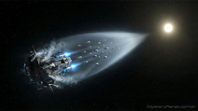 Новые анализы показывают, что таинственный «антихвост» межзвездного гостя — это не газ, а массивное облако сопутствующих фрагментов.