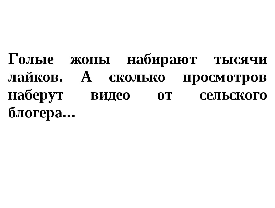 Голые ж...ы набирают тысячи лайков. А сколько просмотров наберут видео от сельского блогера?