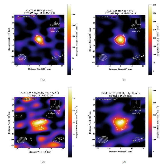 Астрономы использовали компактную решетку Atacama телескопа ALMA для обнаружения и картирования присутствия двух важнейших молекул в газовой коме 3I/ATLAS: метанола (CH3OH) и цианида водорода (HCN).