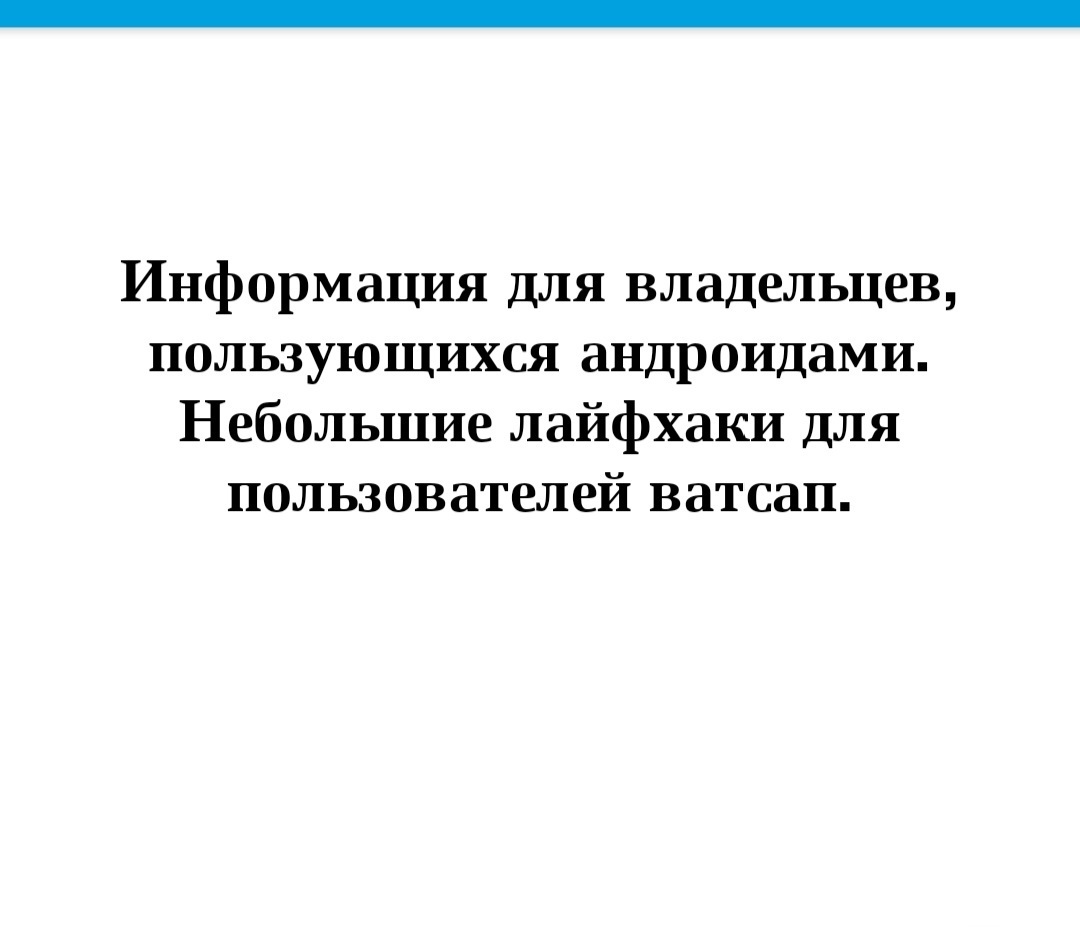 Информация для владельцев, пользующихся андроидами. Небольшой совет для пользователей ватсап.