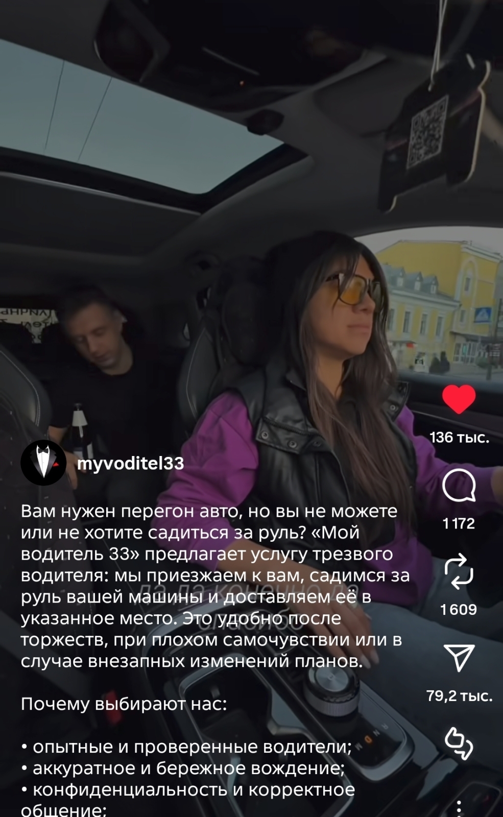 Видеоролик снят с юмором, но вполне оправдывает себя качество предоставления услуги, тем более в плане вежливости. Это презентация компании "Мой водитель" (https://mv33.ru/) для регионов г. Владммир, г. Москва и МО.