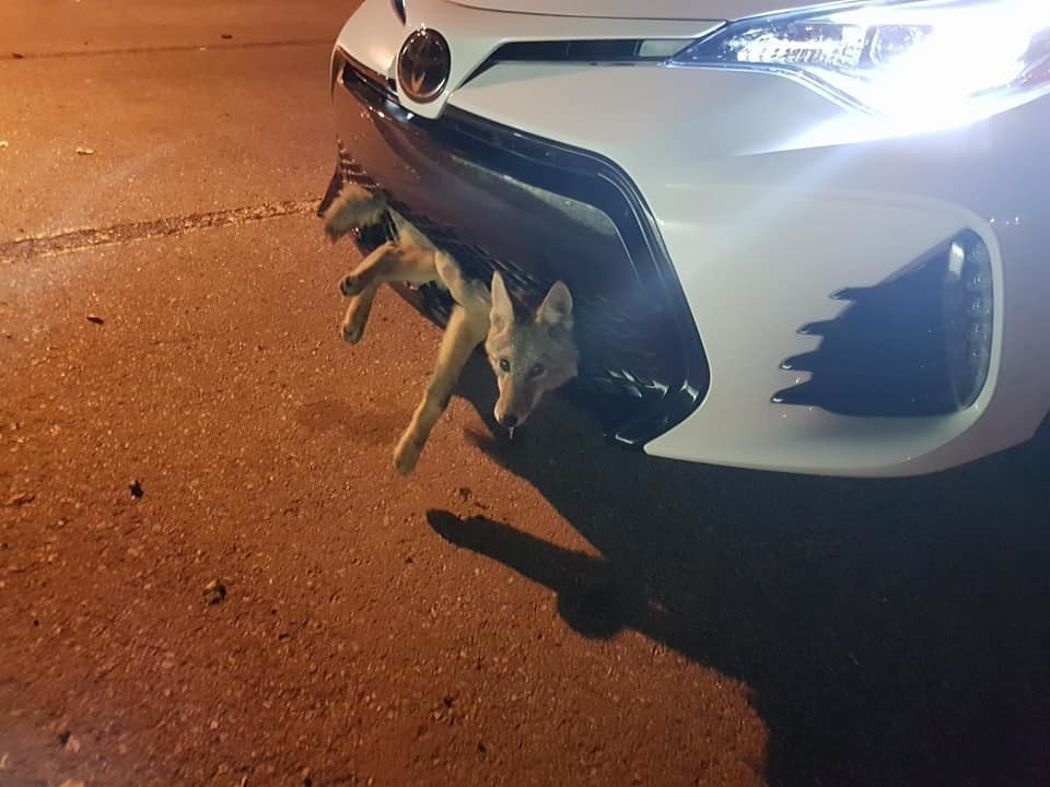 Ну и вдогонку: Канада. Сбитый койот проехал так в решетке радиатора около 30 километров. Когда его вытащили оттуда, выяснилось, что никаких серьёзных травм он не получил